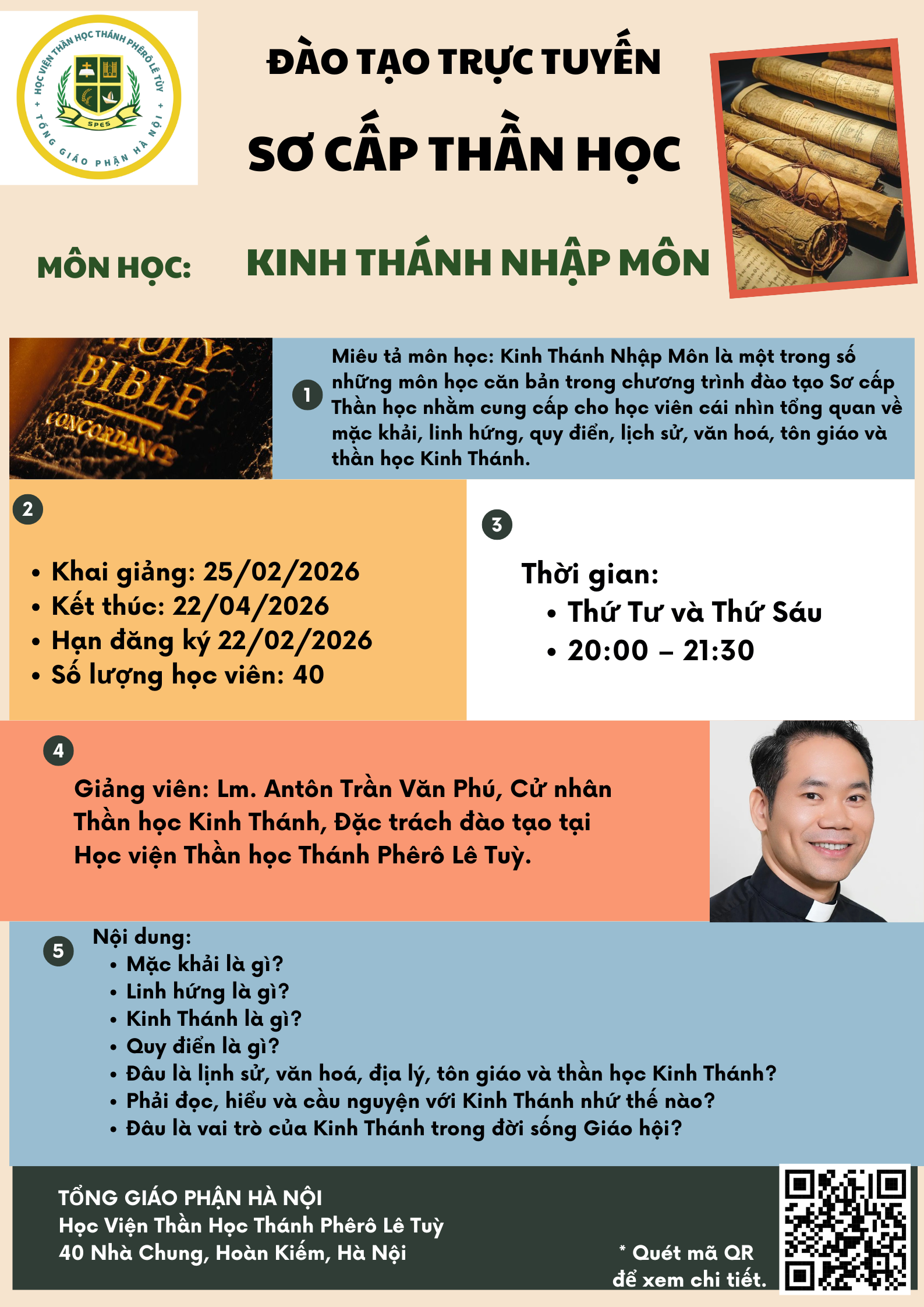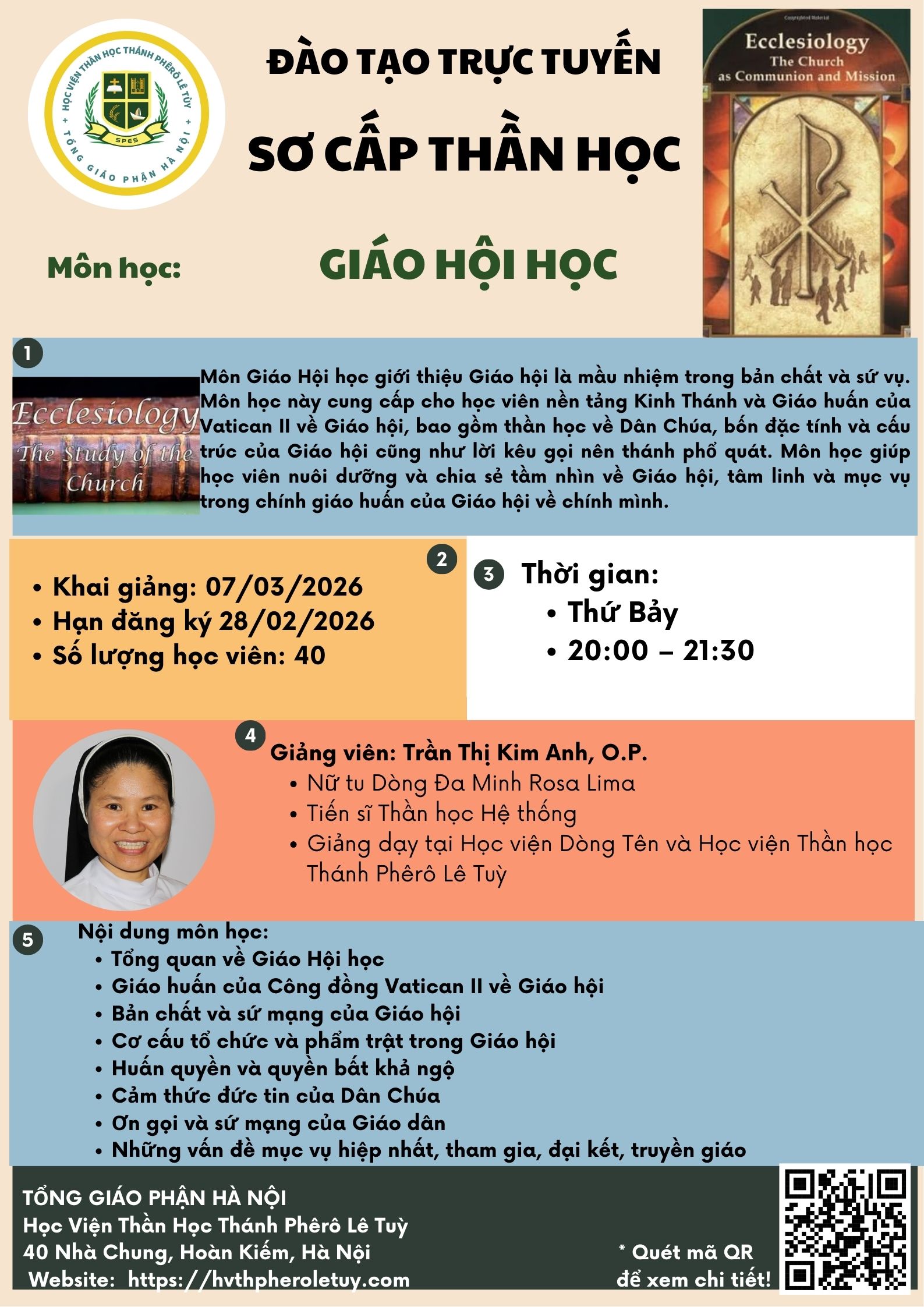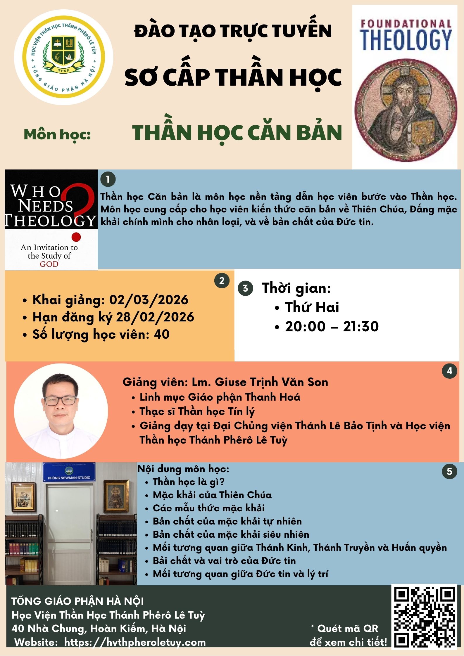 Bạn cảm nhận lời mời gọi đào sâu đức tin và dấn thân phục vụ trong Giáo Hội? Hãy khám phá các chương trình đào tạo của Học Viện Thần Học Thánh Phêrô Lê Tùy và đăng ký tham dự để cùng lớn lên trong Đức tin, Đức cậy và Đức mến.