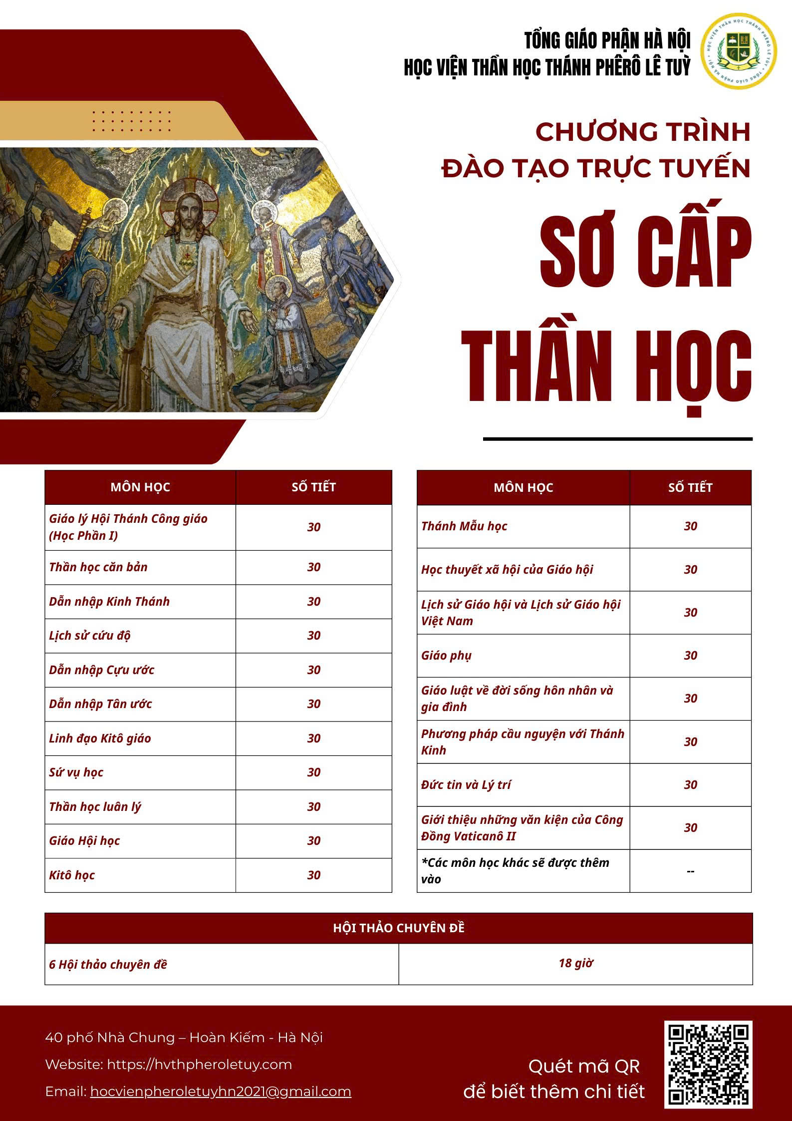 Chương trình Sơ cấp Thần học Mục vụ 1 năm với 26 tín chỉ, đào tạo 4 chiều kích: nhân bản, thiêng liêng, mục vụ và tri thức, giúp giáo dân ý thức ơn gọi và sứ vụ của mình trong Giáo Hội.