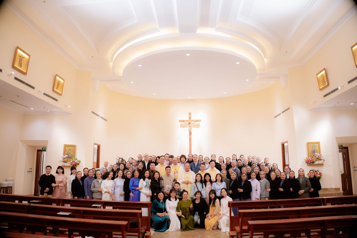 Sau thánh lễ, quý Đức cha, quý Cha, quý Sơ, và quý Học viên đã cùng nhau chia sẻ bữa tiệc tất niên trong bầu khí thân tình và vui tươi. Những câu chuyện cuối năm, những lời sức khỏe và bình an, cũng như tiếng cười rộn ràng đã làm cho tình gia đình thêm bền chặt, trở thành dấu chỉ sống động của sự hiệp thông.